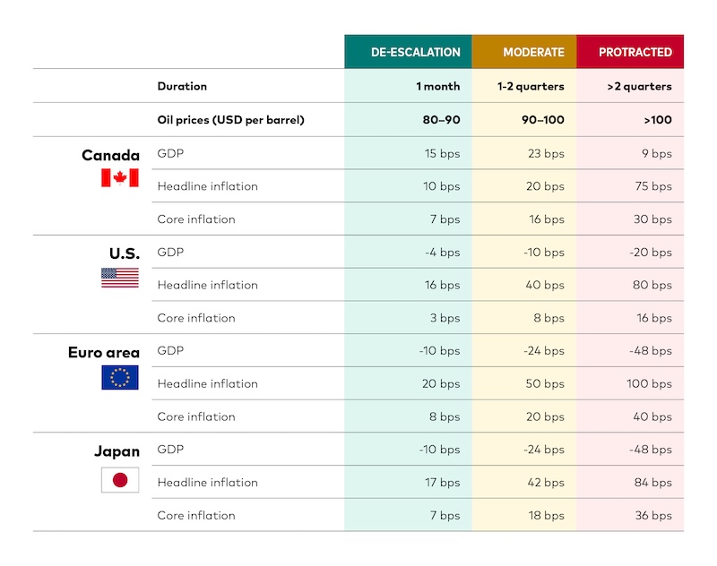 Elevated oil prices stemming from the Iran related conflict are likely to provide a modest tailwind for Canada, given its status as a net energy exporter. While higher energy costs may push headline inflation higher and weigh on household discretionary spending, the overall terms of trade effect should remain supportive for the Canadian economy.